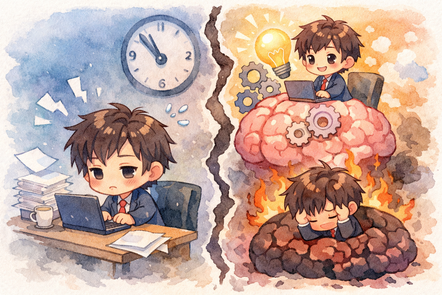 簡単だよ。「仕事がキツくても、自分の裁量(コントロール)で決められるなら、脳へのダメージは少ない」という理論だ。逆に「キツい上に、やらされている(裁量がない)」状態が、最も脳を破壊する高ストレス状態なんだ[6]。